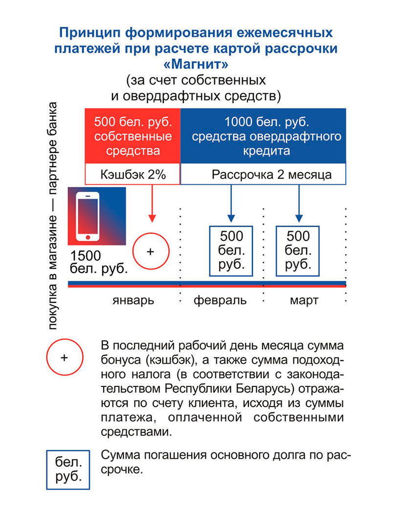 Например: в магазинах «ЦУМ Минск» товары в рассрочку можно приобрести на срок до 6 месяцев, в Торговом центре «КИРМАШ» – на срок до 7 месяцев, а современные гаджеты купить в сети «Электросила» или «»Техно Медиа Трейд» с рассрочкой на 5 месяцев.