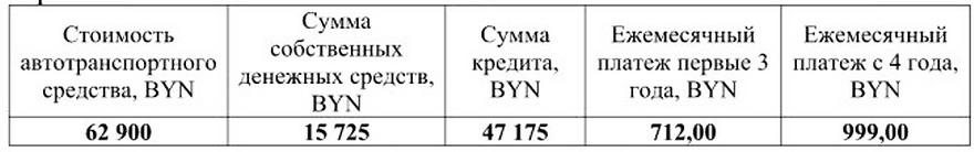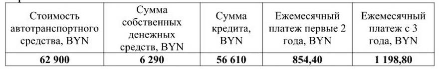 Пример расчета погашения кредита для авто стоимостью 62,9 тыс. рублей