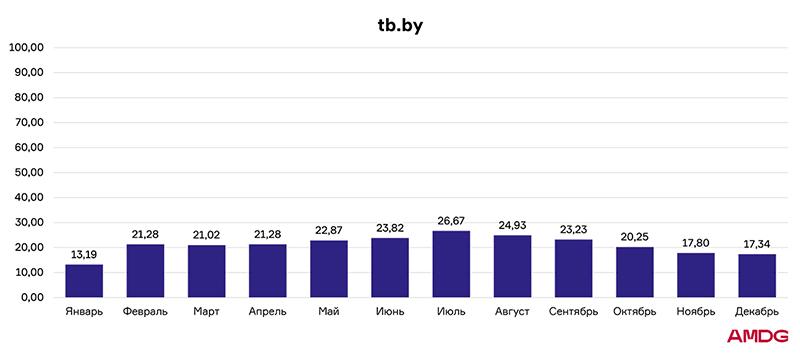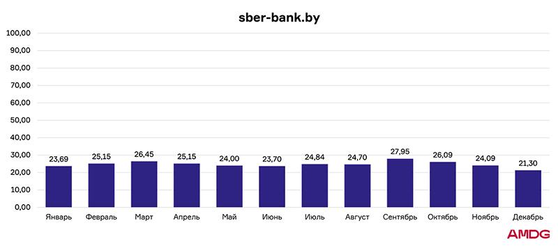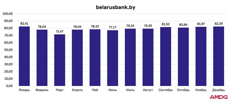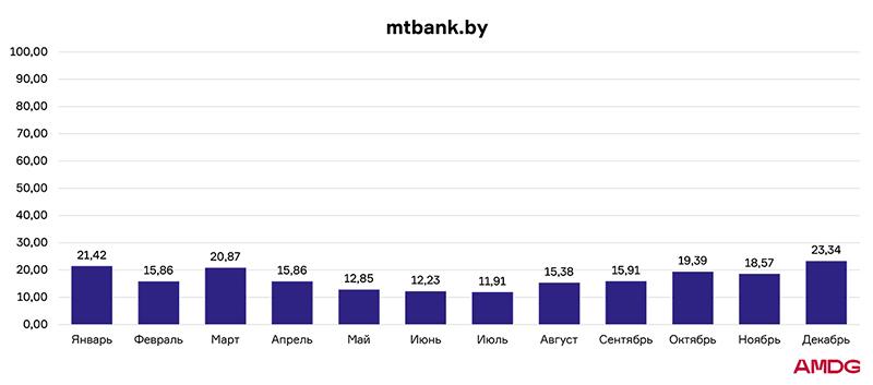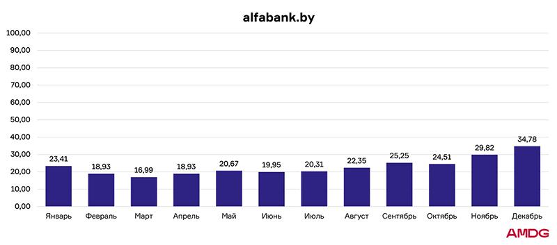 Средний показатель за год составил 22,99%. Такой процент позволил alfabank.by занять пятую позицию в годовом рейтинге банков.