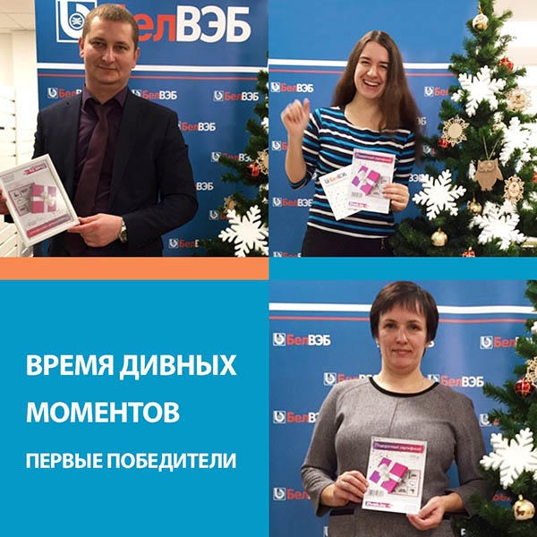 Первые 10 победителей рекламной игры «Время дивных моментов» для держателей карточек MasterCard World «Дива» от Банка БелВЭБ получили свои призы. Главный - подарочный сертификат на 2500 рублей - достался Дмитрию Лодыге.