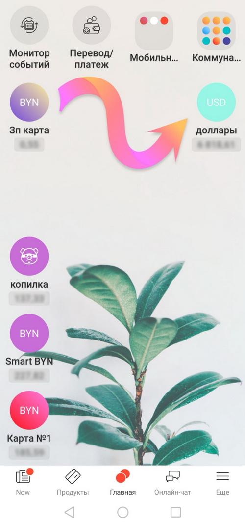 Обмен курсов в приложении довольно простой -- достаточно перетащить иконку рублевого счета на валютный.