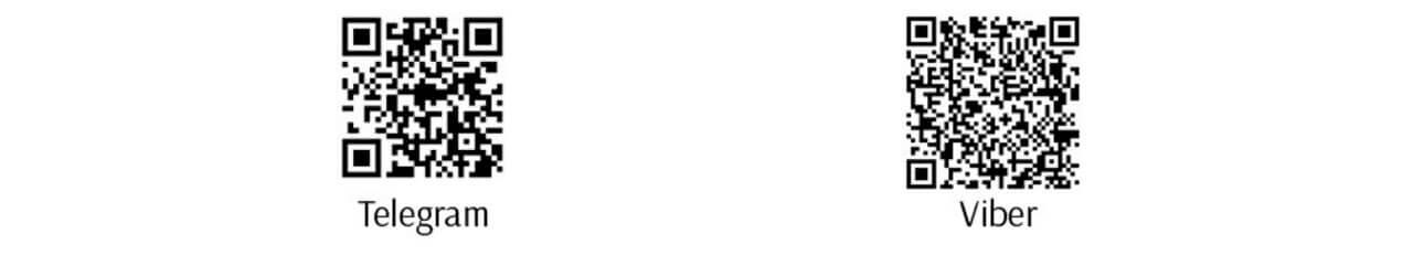 В официальных мессенджерах банка – Viber иTelegram– вы можете первыми узнавать новости и быть в курсе всех событий. Отсканируйте QR-код, перейдите в мессенджер и подпишитесь на канал.