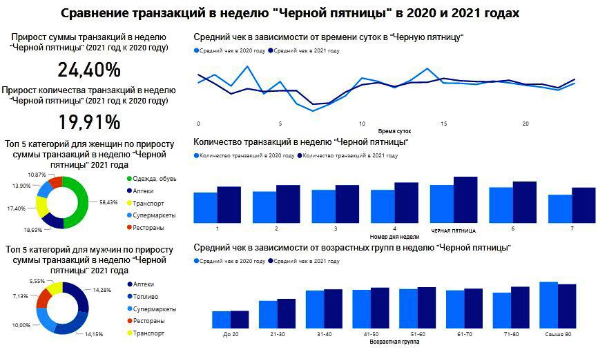 Интересно узнать и о том, что в неделю «Черной пятницы» в минувшем году сумма транзакций увеличилась на 24,4%, а количество транзакций – почти на 20%. При этом у женщин топ-5 по приросту суммы транзакций в неделю «Черной пятницы» возглавляет категория «одежда, обувь» – 58%, а у мужчин на первых местах – «аптеки» (14,28%), а следом идет «топливо» (14,15%).