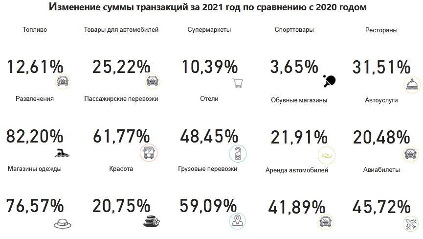 Как изменились суммы транзакций за 2021 год по отношению к 2020 году видно из этих данных: