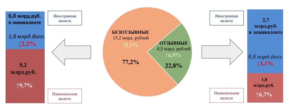 Больше всего средств население размещает в безотзывные вклады: их средний размер на одного вкладчика составил 19,9 тыс. рублей в нацвалюте и $9,7 тыс. в иностранной валюте.