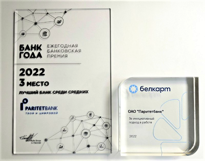 Подведены итоги ежегодной премии «Банк года Беларуси». Paritetbank был награжден за третье место в номинации «Лучший банк среди средних». Кроме того, Paritetbank был удостоен специальной награды от БЕЛКАРТ за «Инициативный подход в работе».
