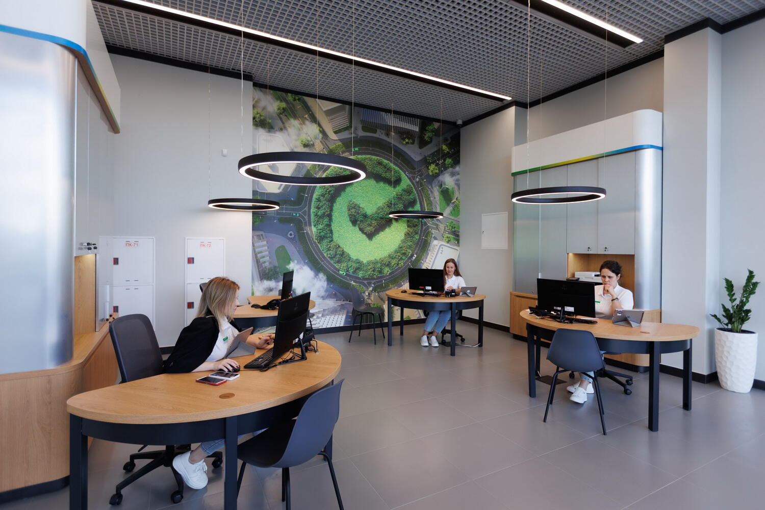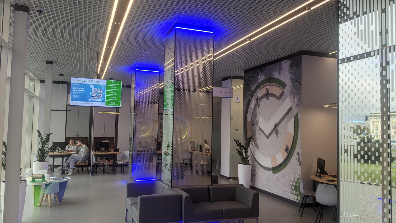 – В соответствии со стратегией человекоцентричности мы исключили работу «через барьер», когда между человеком и сотрудником банка есть какая-то перегородка, окошко или что-то подобное. Теперь это зона приветствия с электронной очередью, несколько комфортных зон ожидания и современные рабочие места.
