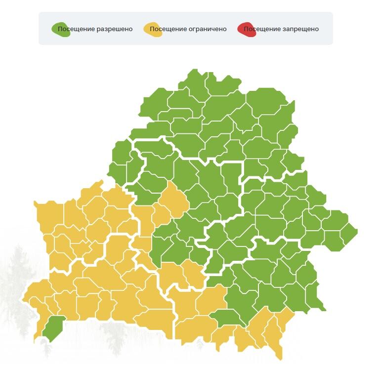 Районов, где были бы установлены запреты на посещение, на карте нет.
