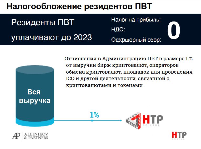 «В Беларуси предусмотрены налоговые льготы для деятельности, связанной с криптовалютами и токенами. Любой резидент парка высоких технологий не платит налог на прибыль, НДС, оффшорный сбор, этот режим продлен до 2049 года. Что касается криптобизнеса, то льготы действуют до 2023 года. Существует лишь обязанность производить отчисления в виде 1% – это требование действует в отношении любого резидента Парка высоких технологий», – напомнил Дмитрий Матвеев.