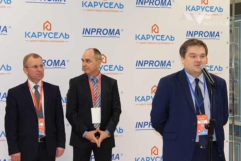 Перед традиционным разрезанием красной ленты выступили представители власти, банка-спонсора и руководители компаний, участвовавших в реализации проекта по строительству «Карусели». Все были единогласны в том, что торговый центр был построен в кратчайшие сроки. Именно рекордные сроки реализации проекта говорят о том, что власти и бизнес в Гомеле сотрудничают и умеют находить общий язык. По задумке инвесторов торговый центр «Карусель» должен стать крупнейшим мебельным магазином в Гомельской области.