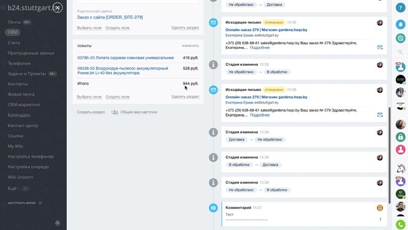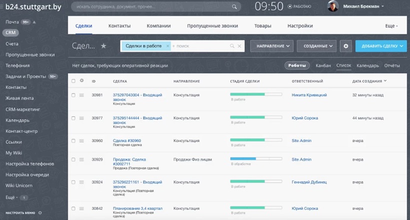 Для белорусского e-commerce она звучит так: товар на сайте есть, а по звонку – нет. На сайте клиент видит, что товар есть, а при покупке оказывается, что он закончился. У нас 1С настолько плотно связана с Битрикс24, что все остатки товаров в режиме реального времени отображаются в системе, и такой проблемы уже в принципе возникнуть не может. Та же ситуация по расчетам с клиентами: менеджеру не надо постоянно обновлять вручную эту информацию – он все видит сразу в карточке клиента.