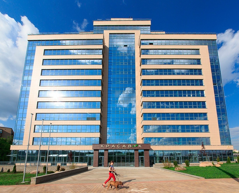 Самобытный бизнес-центр построили рядом со станцией метро «Грушевка» и трехуровневой развязкой на пересечении проспектов Дзержинского и Жукова. «Красавiк» относится к объектам класса «B+» и состоит из 14 этажей общей площадью около 20 тыс. «квадратов». Внутри офисы в формате «open space», велопарковка, конференц-зал, кафе, фитнес-центр и пристроенный закрытый паркинг. Но особый колорит придает национальная тематика: нумерация этажей дублируется названиями месяцев на белорусском языке, а интерьер украшают фотографии Беларуси.