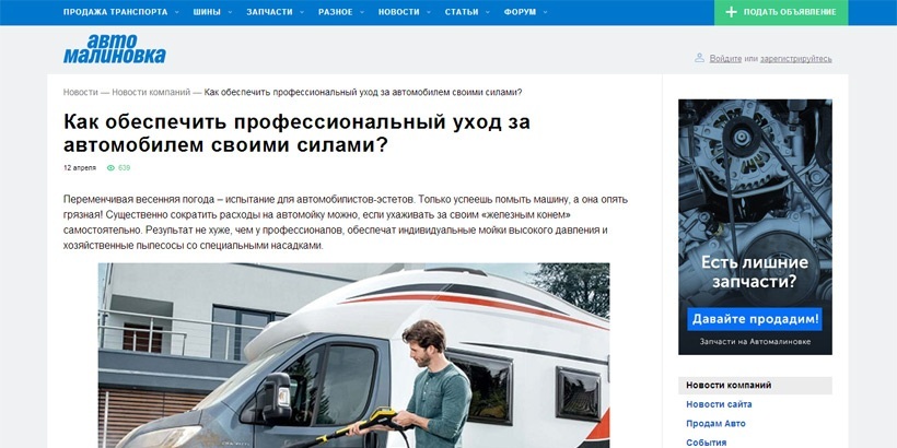 Скрин-шот со страницы сайта av.by – «Автомалиновка».