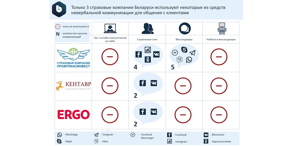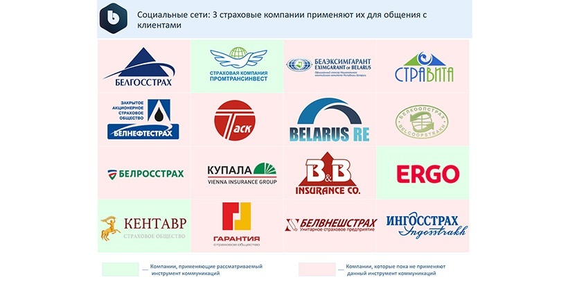 Надеемся, в скором времени и белорусские компании развернутся лицом к посетителям своих страниц в соцсетях. На текущий момент из 16 страховых компаний окошки со значком социальных сетей (Вконтакте, Facebook или Instagram) присутствуют только на сайтах 3-х компаний.