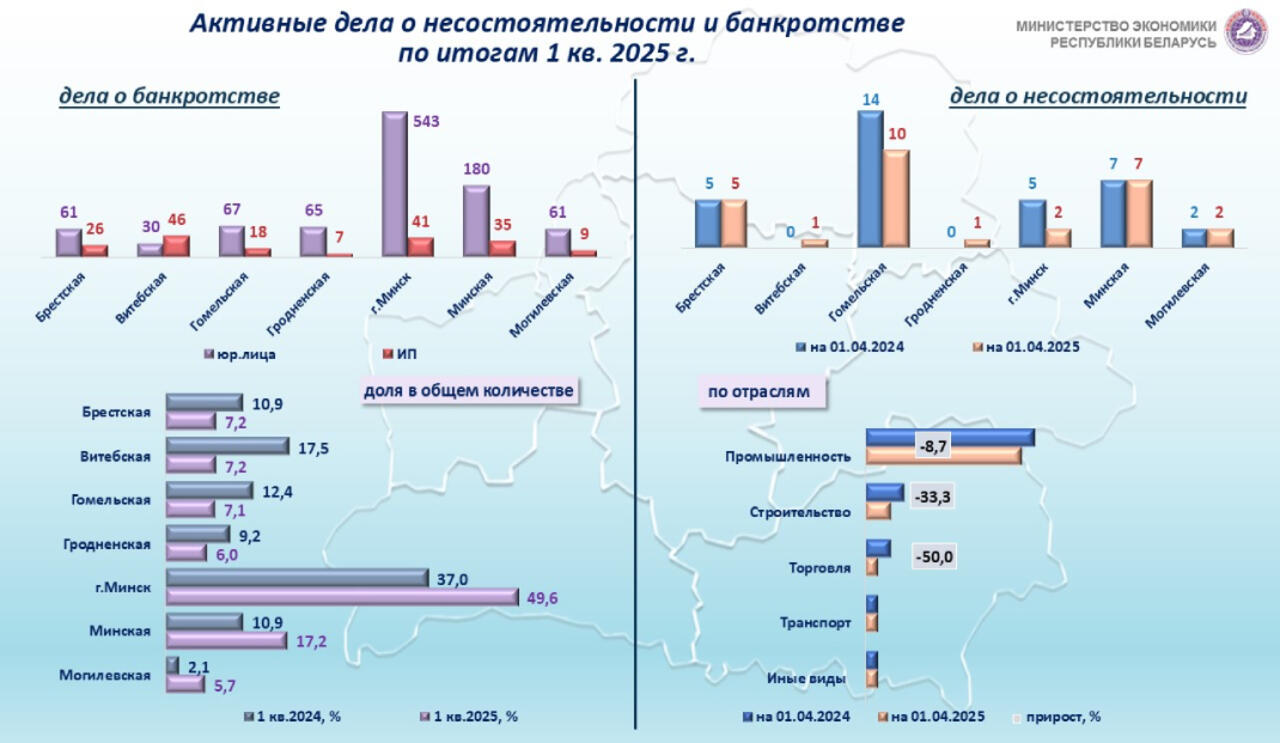 Одновременно число дел о несостоятельности уменьшилось в Гомельском регионе – на 4, в Минске – на 3.