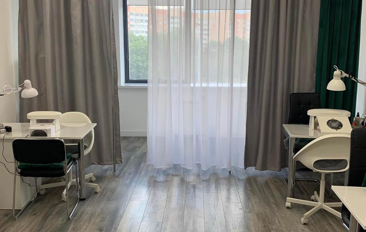 Основное помещение – площадью 36 кв. м, также предусмотрена отдельная зона ожидания и стерилизационная комната. По словам владельца, в коворкинге есть все оборудование для мастеров: 4 места для маникюра, 1 для услуг по педикюру и 1 гримерный столик. Пространство позволяет при желании добавить еще минимум 2 рабочих места. Сумма арендной платы и коммунальных платежей составляет примерно 1000 руб. в месяц.