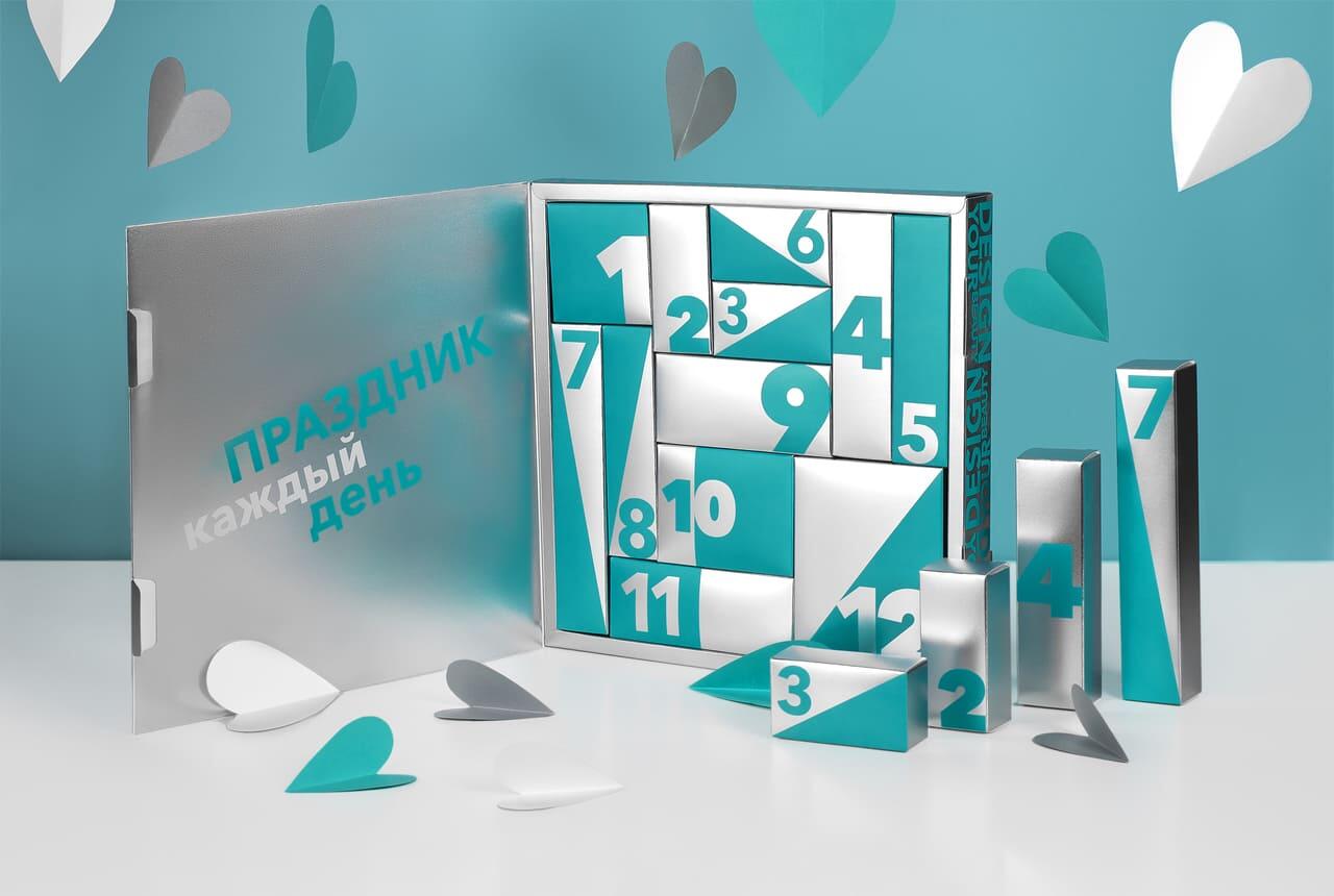 Адвент от BELORDESIGN появился благодаря многочисленным просьбам поклонников бренда. От принятия решения о выпуске фирменного календаря с косметикой до его поступления в продажу прошло менее полугода. Взяв за основу идею популярного презента к Рождеству и Новому году, бренд развил ее и предложил универсальный подарочный набор. Благородный бирюзовый – тиффани – с серебром в лаконичном дизайне – такова упаковка праздничного адвента. Внешний вид и наполнение – результат коллективного творчества специалистов компании.