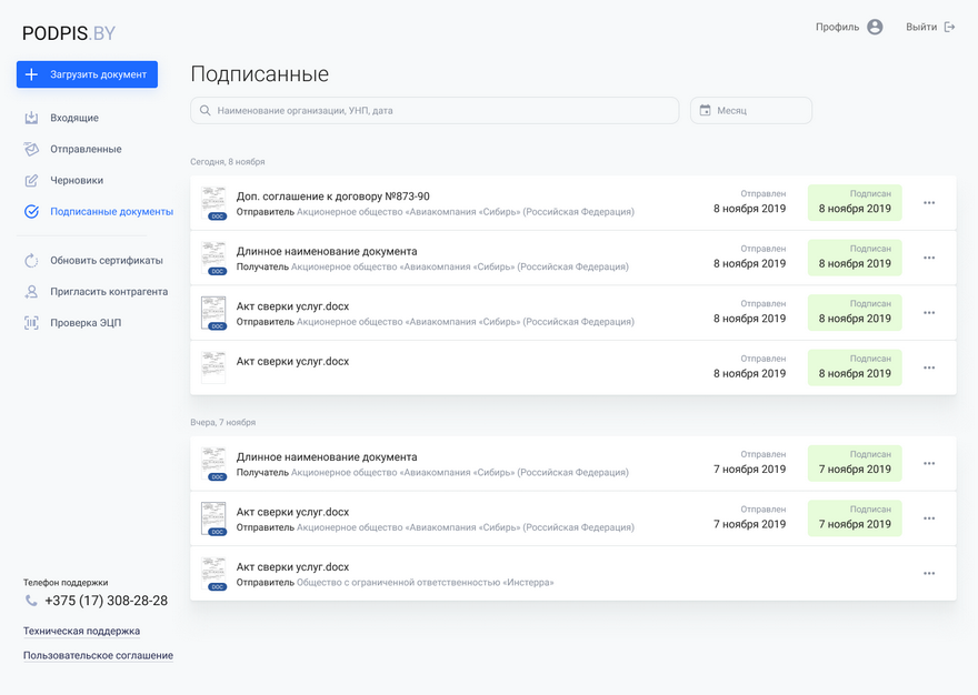 Инструментом для этого может служить бесплатный сервис обмена документами с электронной цифровой подписью (ЭЦП) – podpis.by