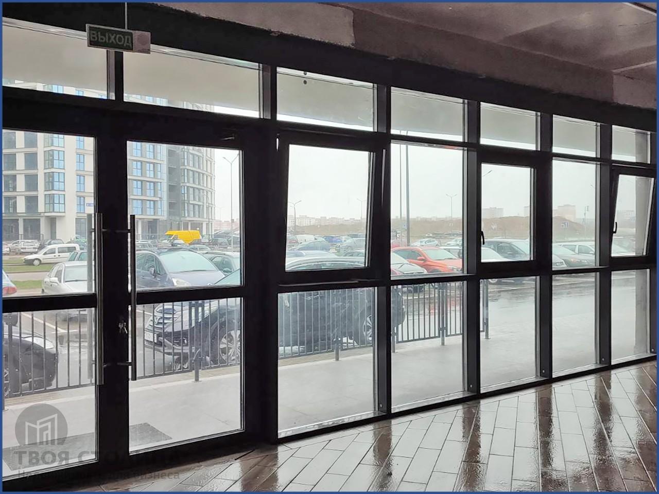 Торговое помещение выделяется витражным остеклением, а окна, по словам арендодателя, выходят на сторону с хорошим трафиком. Также в объявлении отмечается, что в этом жилом доме (и по соседству) уже выкуплены все квартиры.