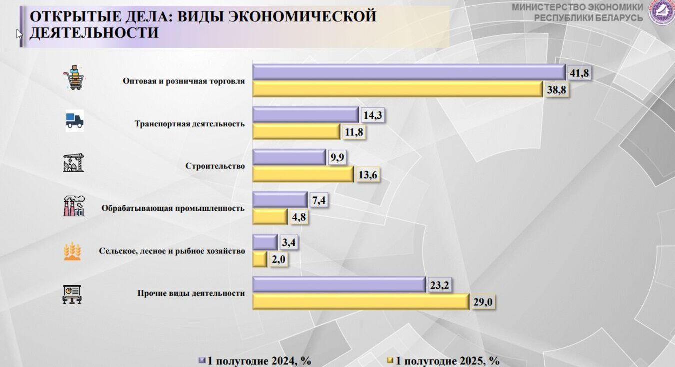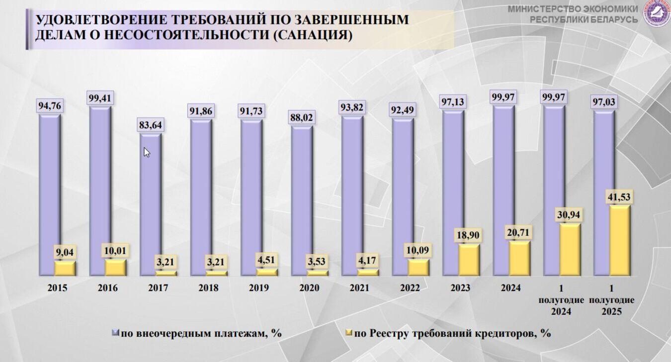 В глобальном отчете о банкротствах Dun & Bradstreet Global Bankruptcy Report 2025 говорится, что Беларусь занимает третье место в мире по темпам роста числа банкротств в корпоративном секторе – с ростом на 39 % в 2024 году по сравнению с предыдущим годом. Эту информацию Департамент по санации и банкротству Минэкономики не комментирует, считая, что зарубежная статистика «ничего не показывает».