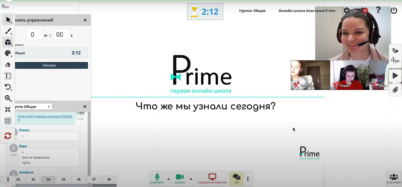 Как и в обычной школе, уроки в Prime длятся по 45 минут. В каждом классе – до 16 детей. При желании создаются мини-чаты. На удаленке здесь учатся школьники из Беларуси, Германии, Англии, Арабских Эмиратов, Испании, Турции.