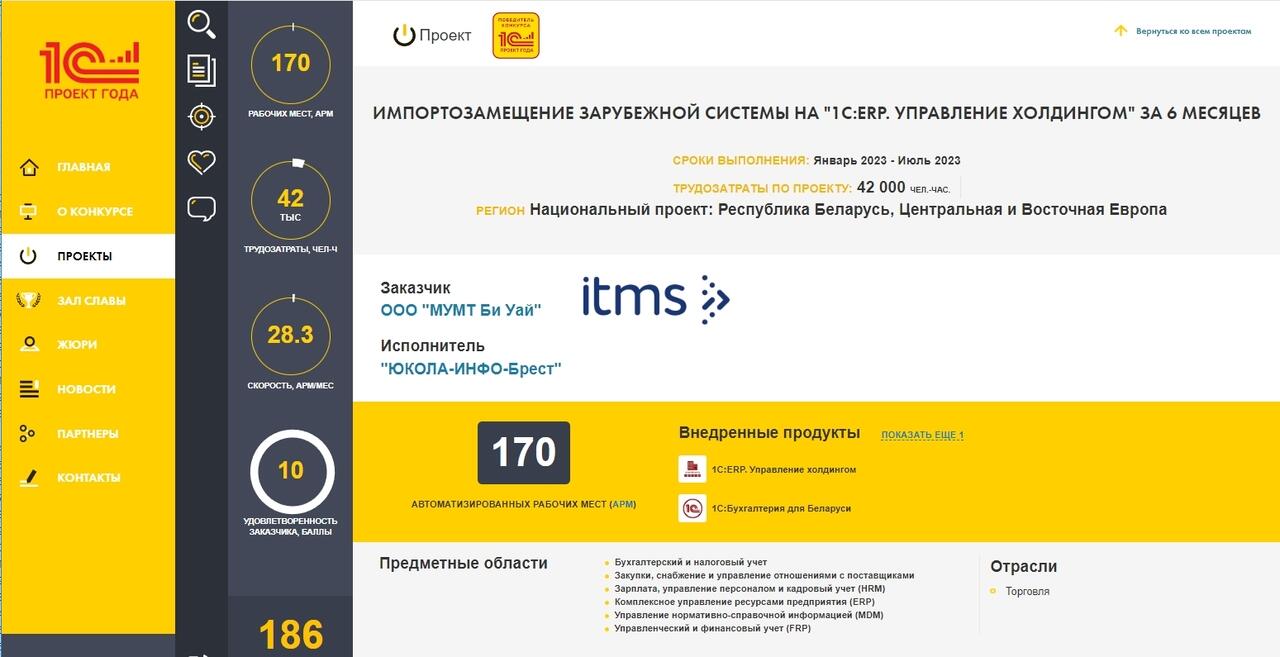 Отказ многих ключевых зарубежных вендоров поддерживать и обновлять свое программное обеспечение на территории санкционных стран привело к необходимости импортозамещения иностранных ERP-систем, ранее внедренных на белорусских предприятиях. Возможность обеспечить информационную безопасность данных, исключить уязвимость и снизить совокупную стоимость владения системой стало для руководства ООО "МУМТ Би Уай" решающим фактором при выборе экосистемы "1С" в качестве аналога иностранной платформы.