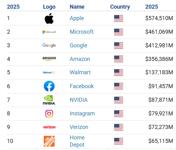 Согласно отчету Brand Finance, в 2025 году Apple остается самым дорогим брендом в США и мире.