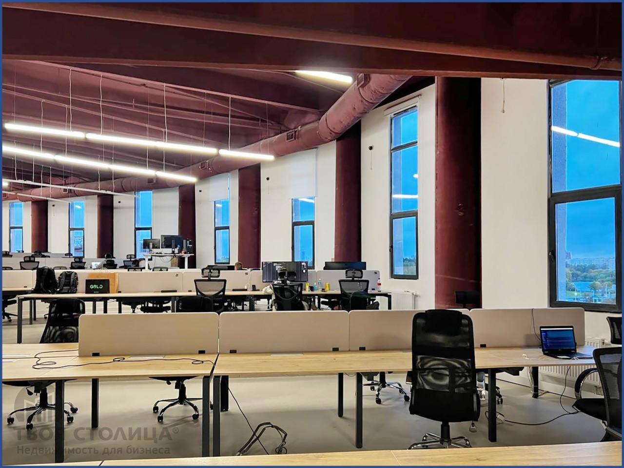 Переходим к еще одному варианту, который подходит для компании, нуждающейся в просторном офисе. Здесь предлагаются помещения от 364,6 до 887,4 кв. м. Предусмотрены пространства как в формате open space, так и кабинетная система. Есть возможность аренды блоками.