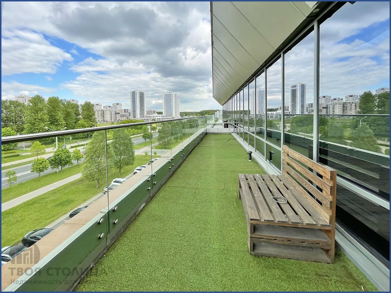 Пространство представлено в формате кабинетов и open space. Есть выход на террасу. А благодаря панорамному остеклению можно наслаждаться видами города. Доступ в офис может осуществляться 24/7. Для удобства сотрудников предусмотрены парковки у здания и подземная. В шаговой доступности расположены магазины, кафе, отделения банка.