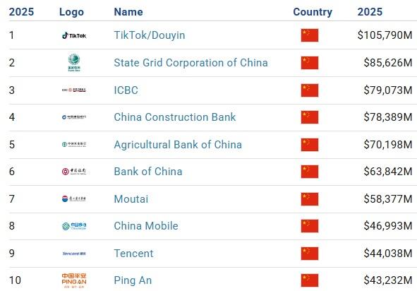 Согласно отчету Brand Finance China 500, в 2025 году TikTok/Douyin остается самым дорогим брендом в КНР.