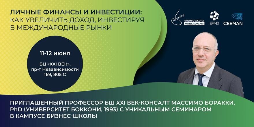 11 – 12 июня Массимо в кампусе бизнес-школы в Минске проведет практический семинар «Личные финансы и инвестиции: как увеличить доход, инвестируя в международные рынки». Профессор прилетит специально из Милана, чтобы помочь белоруссам научиться инвестировать на международных рынках.
