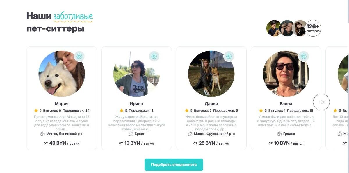 За первые четыре месяца работы сервиса пет-ситтером стали 80 человек. Собеседования проводили каждые 25 минут, сейчас желающих не меньше: в системе зарегистрировано около трех тысяч анкет. Удовлетворить спрос позволяют 126 специалистов из различных уголков Беларуси. Каждого сотрудника Мария знает лично и всегда на связи с исполнителями. О том, что с вашим питомцем все в порядке, автор проекта также в курсе, поскольку все отчеты дублируются.