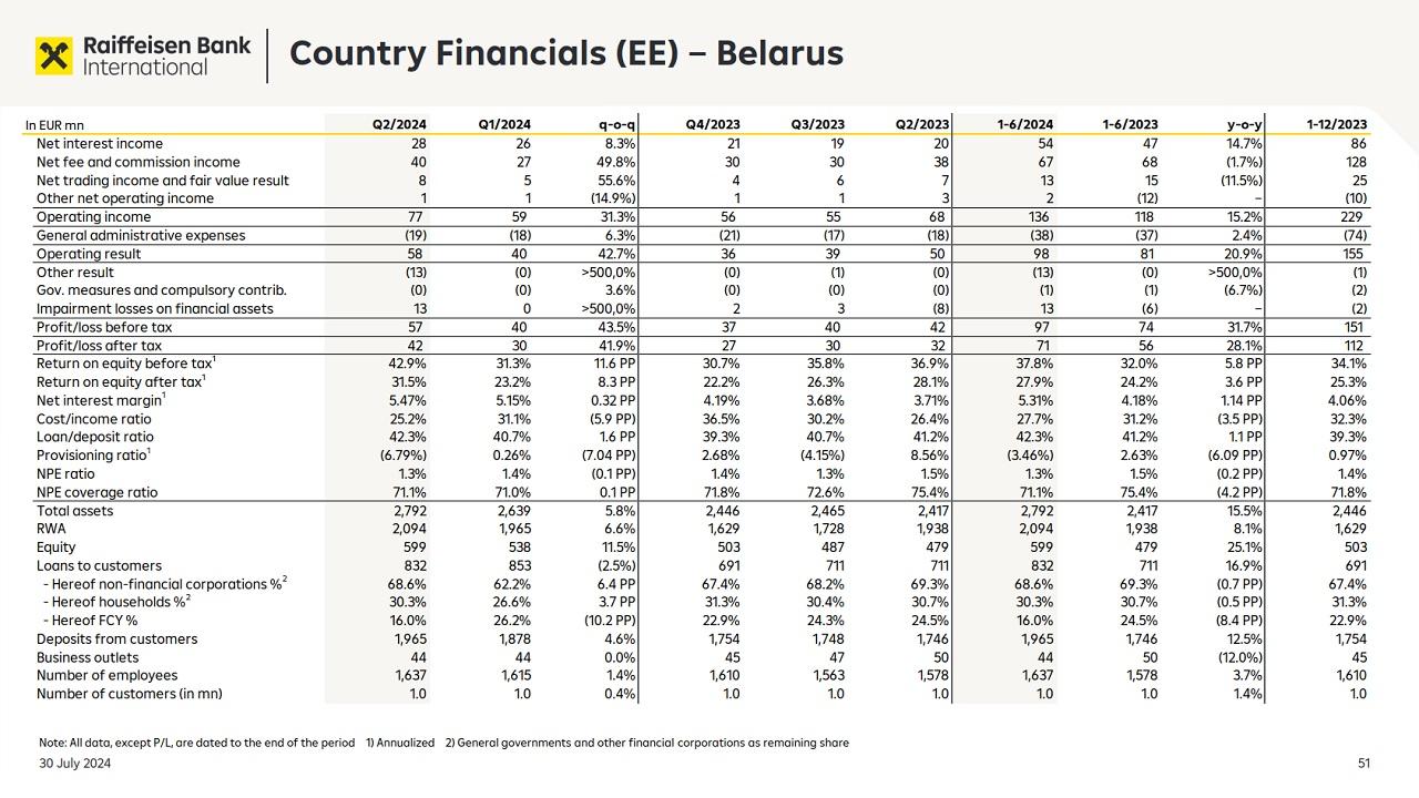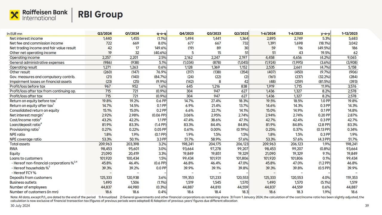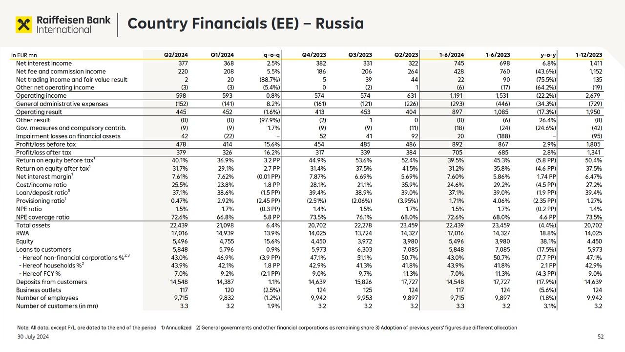 Стоит отметить, что за вычетом России и Беларуси консолидированная прибыль RBI за январь-июнь составила всего 604 млн евро (+21%).