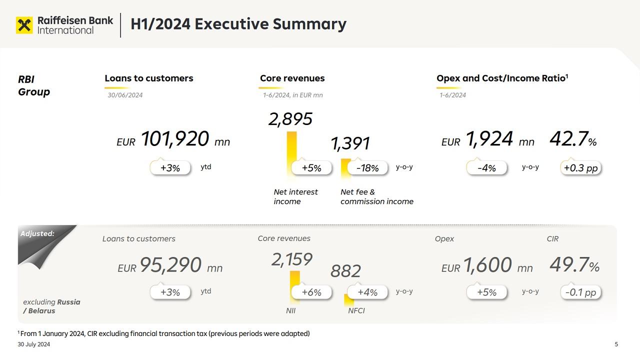 Австрийская финансовая группа RBI представила отчет о деятельности компании за первые шесть месяцев 2024 года, который включает данные и об активах в Беларуси.