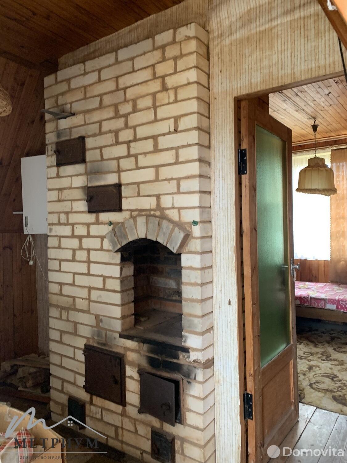 Площадь всего дома насчитывает почти 50 квадратов, а построен он в 1986 году. Перед домом – высокое крыльцо с террасой, а внутри есть работающая печь с камином. Стены изнутри облицованы вагонкой. Вся территория занимает 4 сотки, на участке есть гараж.