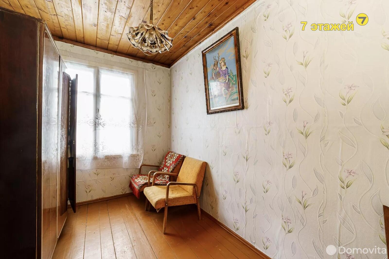 Площадь дома – 52 квадратных метра, на первом этаже расположились 3 небольшие комнаты, кухня и прихожая. А на цокольном этаже находится гараж. Сезонная вода заведена на кухню, отапливается дом печью. Участок размером 4 сотки с плодовыми деревьями и розами. А еще на территории находится санузел. Ограждение – забор из сетки.