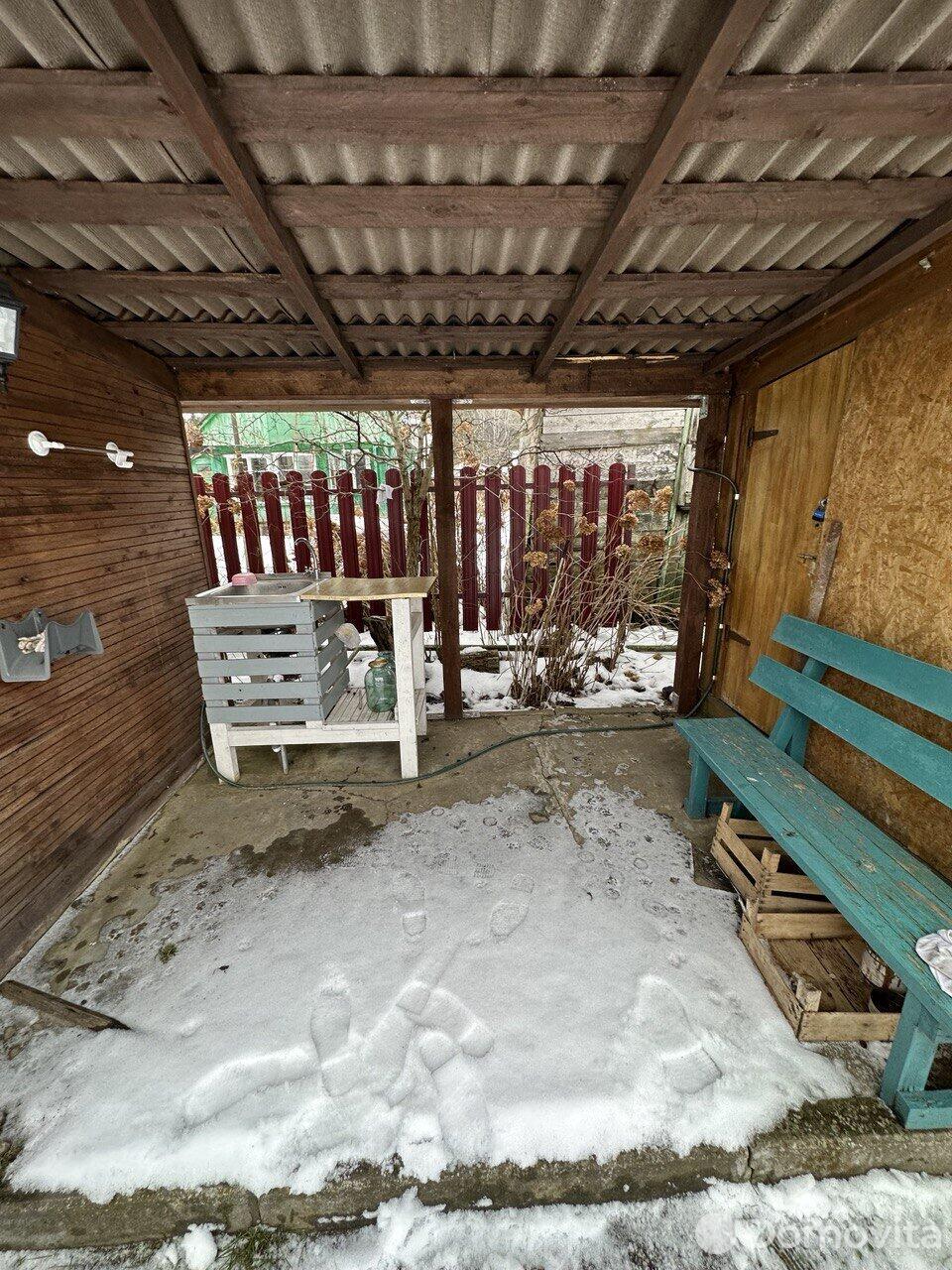 Построили садовый домик в 1990 году. Подойдет он только для проживания в теплое время года, так как печки тут нет. Зато в каждой комнате по несколько больших окон, есть большая застекленная терраса перед домом. Стены внутри выкрашены в спокойные тона, в дом заведено сезонное водоснабжение.