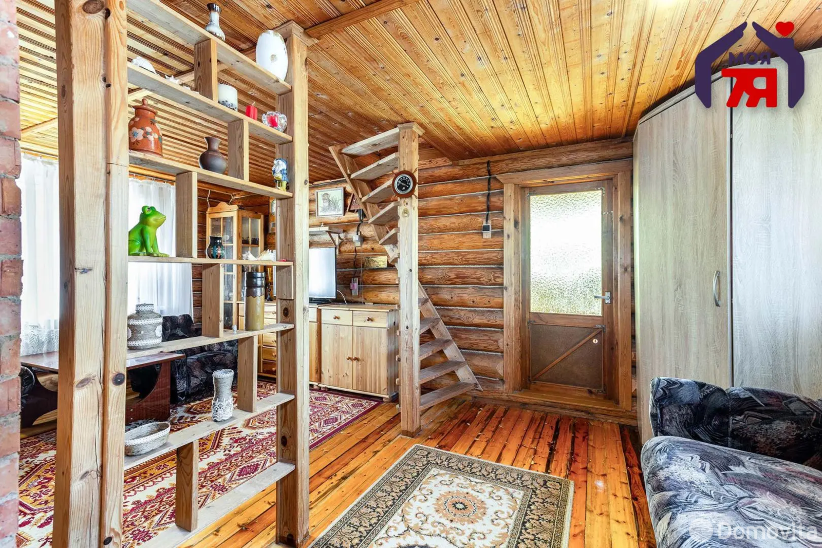 Участок засажен плодовыми деревьями и туями. На территории расположены беседка и теплица. И, конечно же, имеется баня. В пешей доступности от дома находятся магазин, озеро и лес. Минское море — всего в 2 км от дачи.