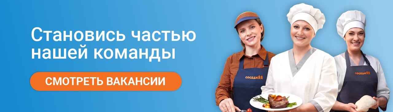 В «Соседях» вы сможете не только добиться успехов в кулинарном деле, но и принести радость людям. Здесь вас поддержат, оценят мастерство и позволят развиваться. Приходите, торговая сеть «Соседи» ждет вас!