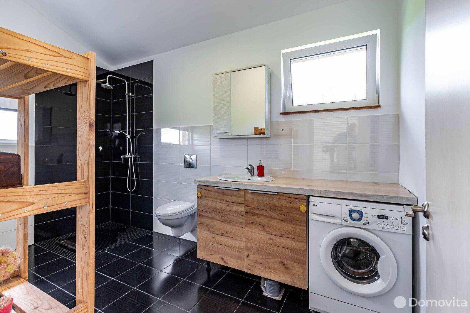 Коттедж в 20 километрах от Минска и в паре минут ходьбы от реки Птичь. Дом построен в 2019 году из сруба, общая площадь 64 квадрата. На первом этаже жилая комната и кухня-гостиная, раздельный санузел и парная. На втором этаже одна жилая комната. Хозяева оставят в доме мебель и технику. Например, на кухне – холодильник, газовая плита, вытяжка, а в санузле – стиральная машина. В комнате на первом этаже расположен камин. В дом заведены вода из скважины и местная канализация. Отапливается он электроконвекторами. Площадь участка 9,57 сотки.