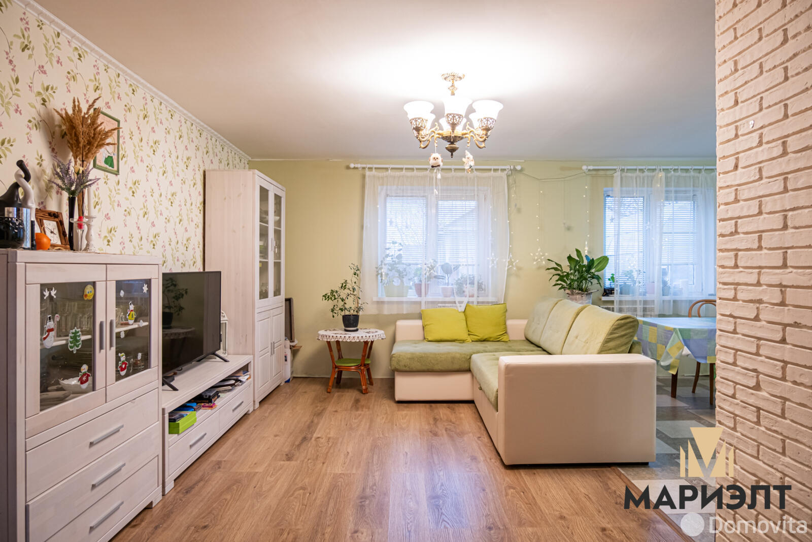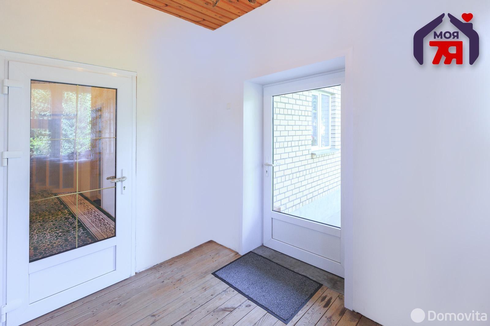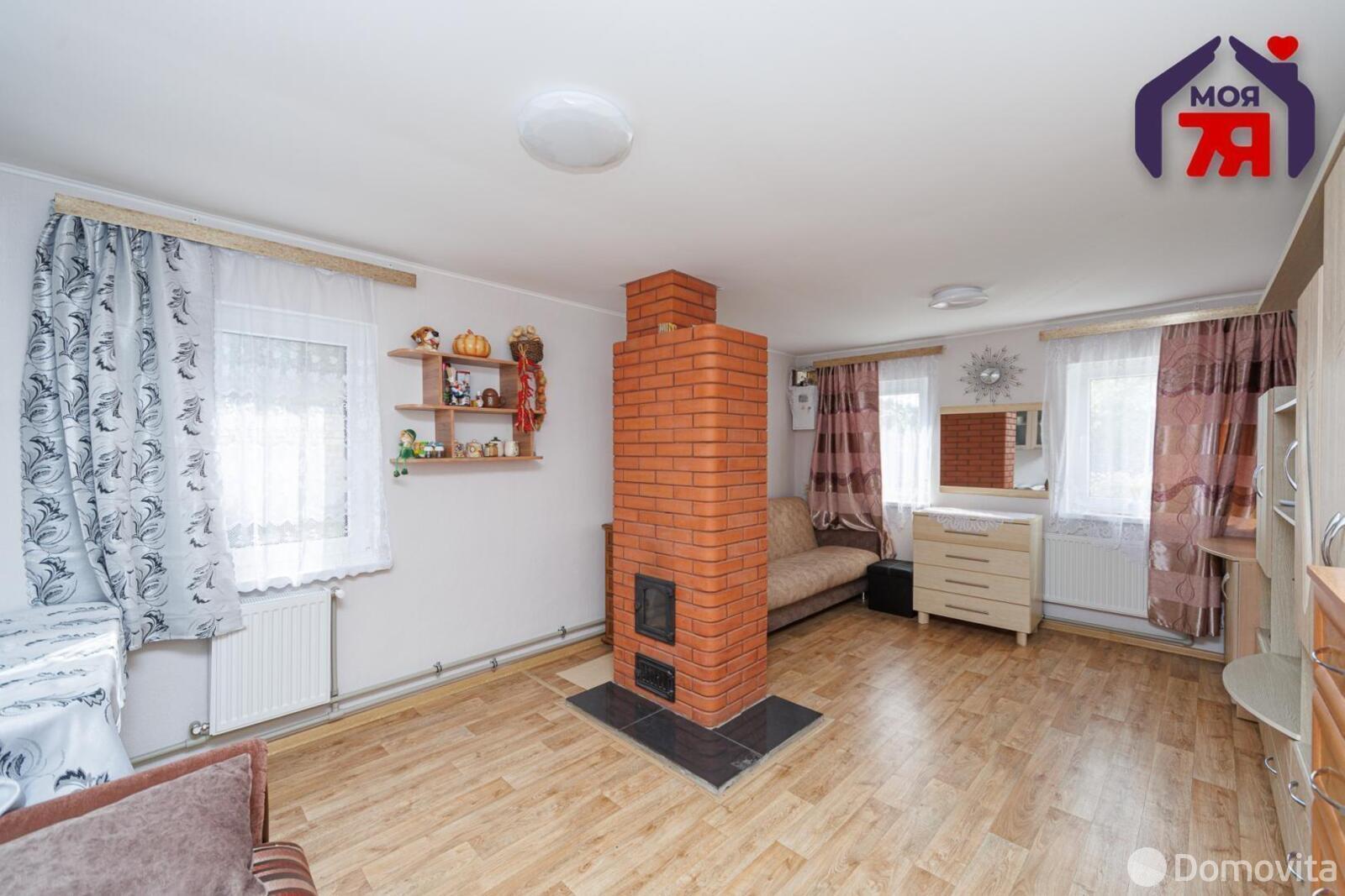 На очереди у нас двухэтажный кирпичный дом в деревне Нелидовичи, который находится в 7 км от Минска. Построено жилье в 1989 году. Площадь дома составляет всего 51,1 кв. м, поэтому данный вариант подойдет небольшой семье. В доме есть газ, автономная система водоснабжения (скважина), электроснабжение, оптоволокно, канализация ‒ местная.