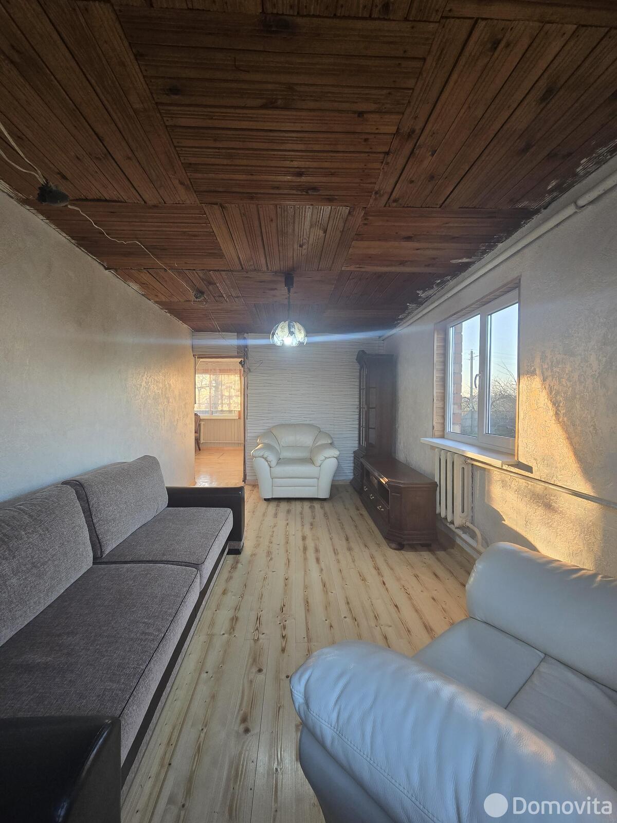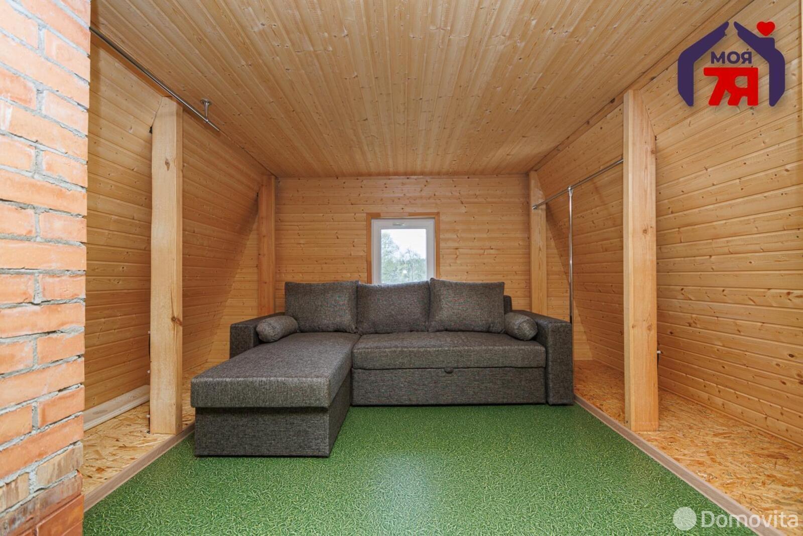 Еще один вариант, который мы нашли, находится в деревне Закружка ‒ в 25 км от столицы. Построен кирпичный дом в 2002 году, его общая площадь составляет 122 кв. м. Предусмотрены три просторные жилые комнаты и мансардный этаж (требует обустройства).