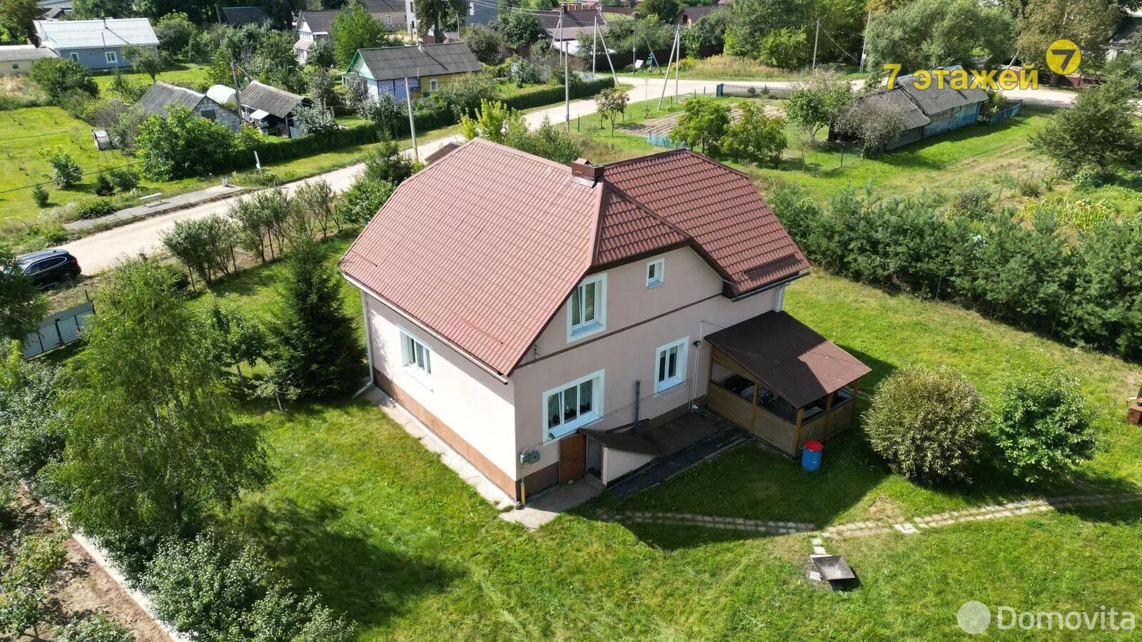 Площадь участка ‒ 17,48 сотки. Здесь растут деревья и кустарники, также расположены гараж и хозяйственные постройки. В шаговой доступности находятся магазин и остановка общественного транспорта. До Минска ходят автобусы и маршрутное такси.