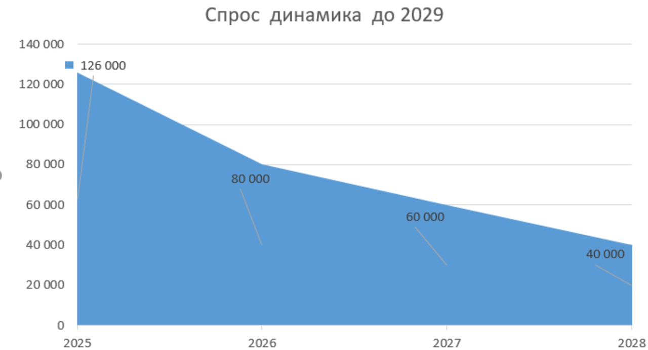 | Прогноз: среднестатистический прирост спроса до 2029 года | 126 000 | 80 000 | 60 000 | 40 000 | 306 000 |