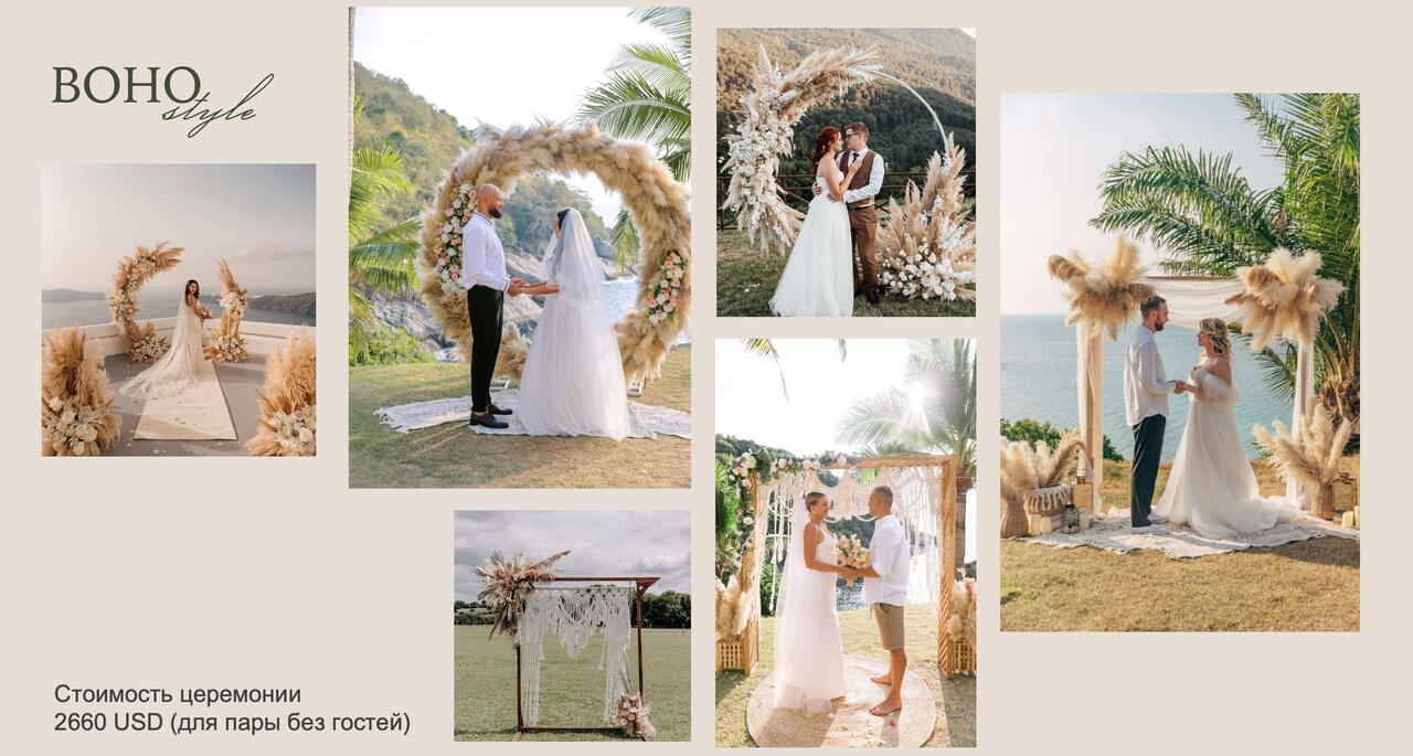Также были моменты, когда к нам обращались с запросом о свадебной церемонии на Пхукете. Наша команда TravelHub готова с помощью партнеров на месте организовать это событие. Итоговая стоимость, конечно же, зависит от предпочтений клиента: выбранного стиля, наличия или отсутствия гостей, класса автомобиля для трансфера и других деталей.
