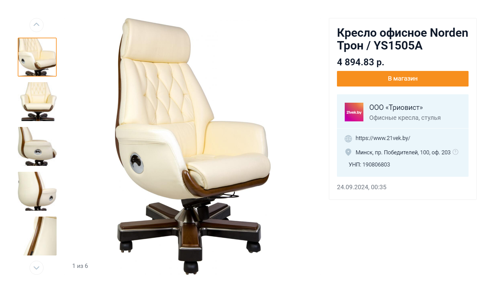 - Кресло офисное Norden Трон / YS1505A – 4 894,83 руб. (натуральная кожа, максимальная нагрузка 150 кг, ширина сиденья – 47 см