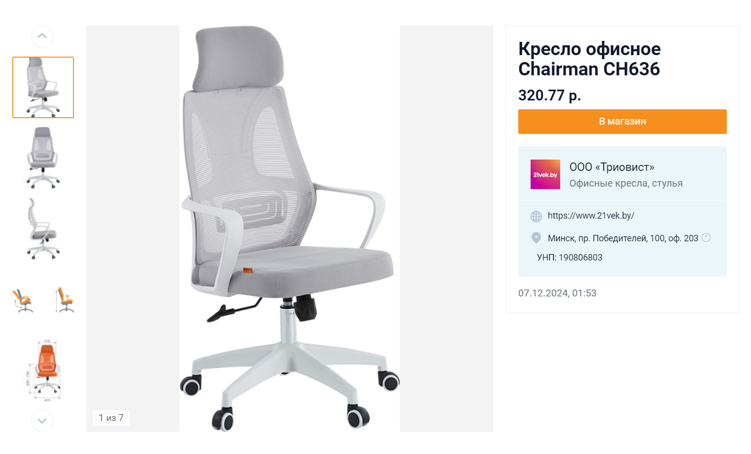 - Кресло офисное Chairman CH636 – 320,77 руб.