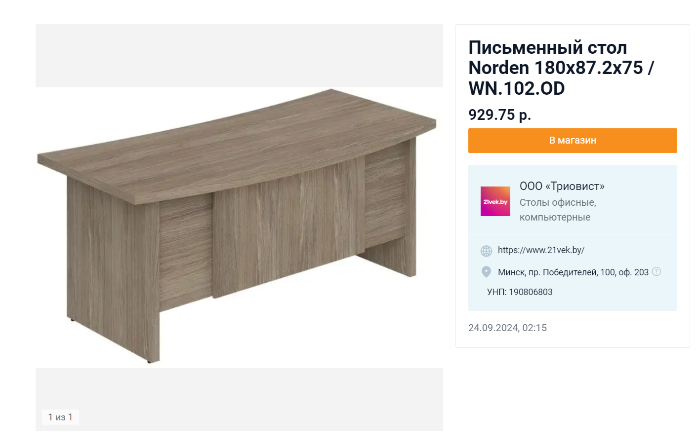 - Письменный стол Norden 180x87.2x75 / WN.102.OD – 929,75 руб.
