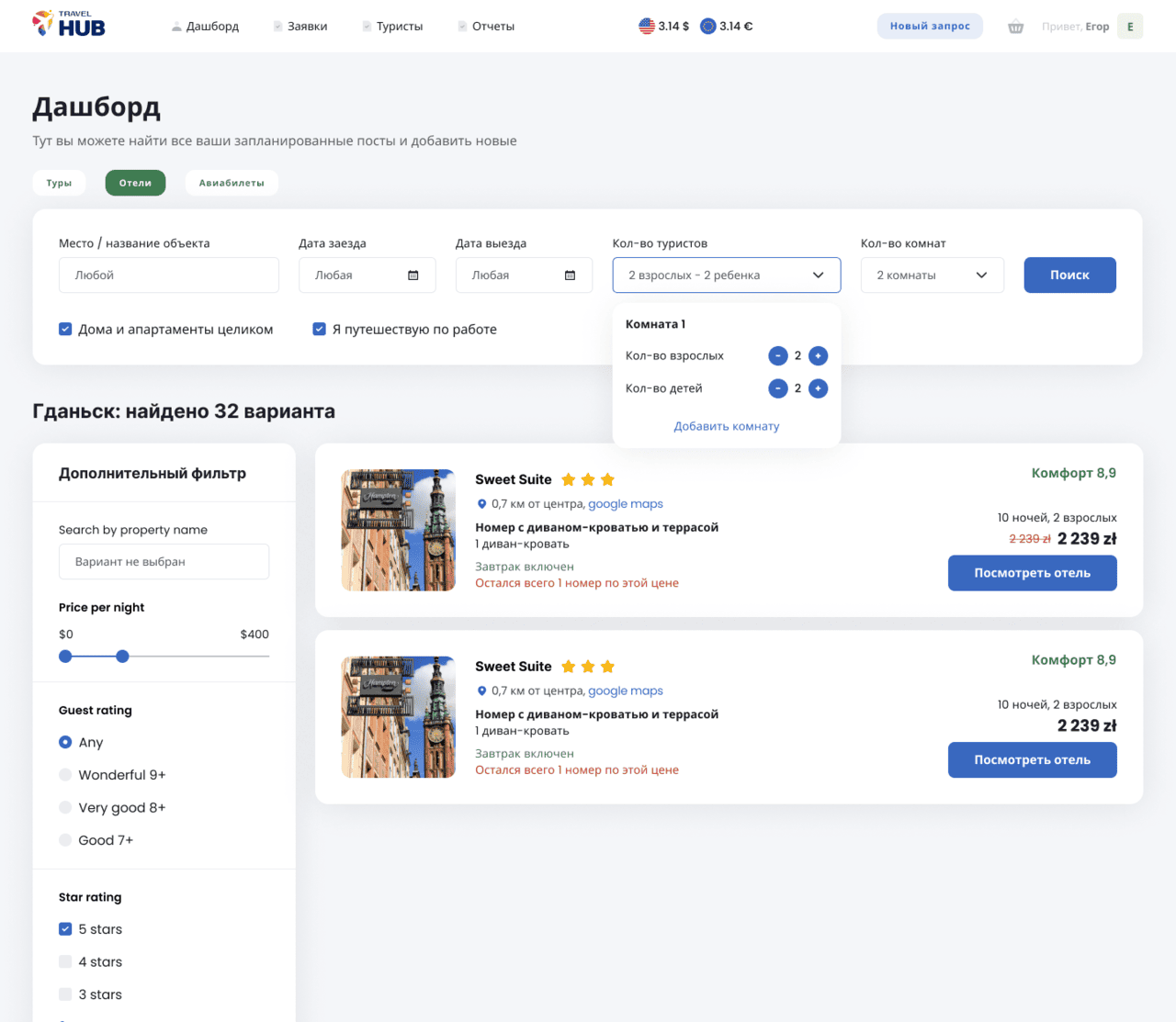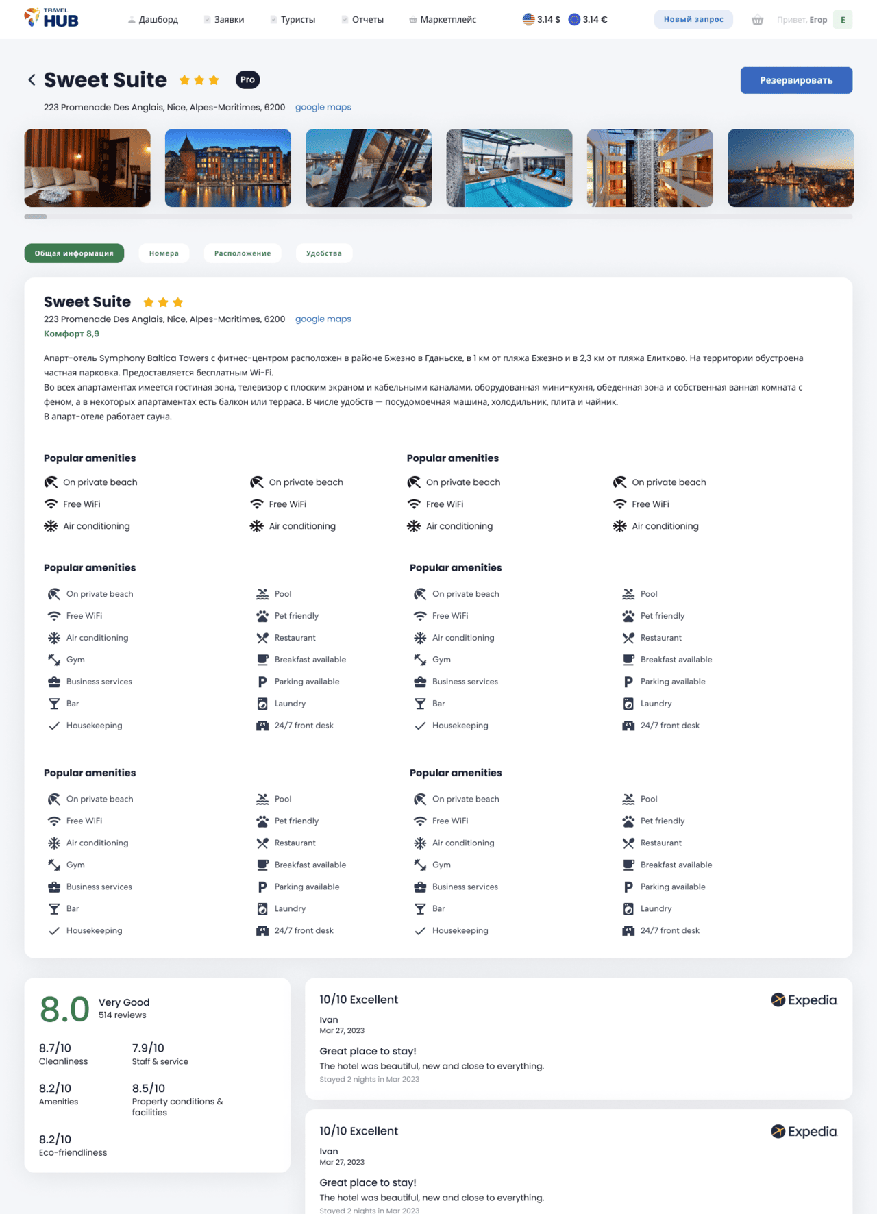 - Легкое бронирование жилья, билетов и других услуг