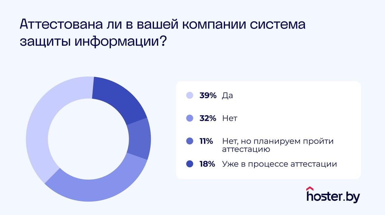Центр кибербезопасности hoster.by провел опрос 130 технических специалистов из различных белорусских организаций, чьи информационные системы так или иначе работают с персональными данными. Итог — лишь 39% опрошенных заявили, что их система прошла соответствующую процедуру аттестации. А 49% считает, что выполняет все требования законодательства в области защиты персональных данных. Подробности — в материале.
